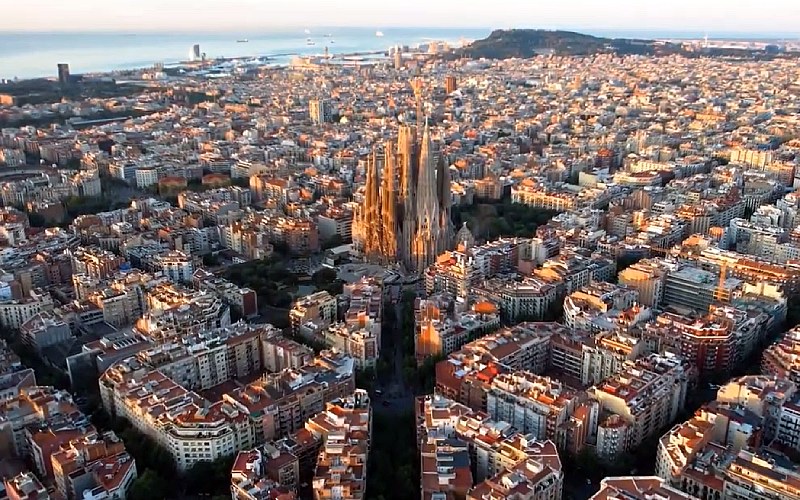 Dronebeelden van Barcelona onthullen de skyline van de Spaanse kuststad