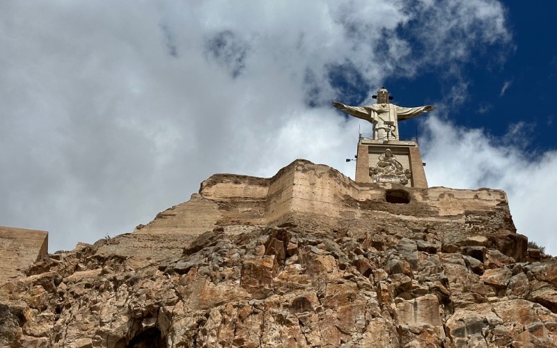 Een groot beeld van het Heilig Hart bekroont een middeleeuws fort en lijkt, met alle respect, op Christus de Verlosser in Brazilië. De overlapping van tijdperken creëert een uniek beeld dat vanuit de hele tuin zichtbaar is. Boven zijn de uitzichten een omweg waard.