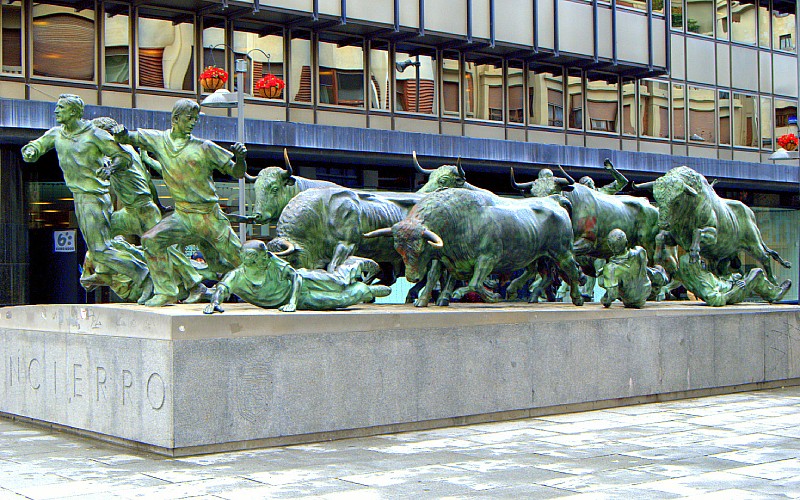 Een hypnotiserend bronzen monument dat de adrenalinestoot van de San Fermín-stier vastlegt terwijl ze door de Estafeta-straat rennen. Het sculpturale ensemble bestaat uit zes Victorino Martín-stieren, drie ossen en tien rendieren en weegt meer dan tien ton.