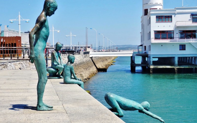 Op de prachtige boulevard van Santander duiken vier bronzen kinderen het water in, uitkijkend over de baai. Het kunstwerk herinnert aan de kinderen die bekend staan als raqueros, meestal weeskinderen die naar munten doken die door voorbijgangers in zee waren gegooid.
