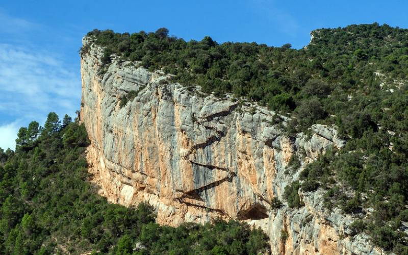 Op de grens van de provincies Huesca en Lleida, aan de ene kant van de rivier de Noguera Ribagorzana (die over een groot deel van zijn loop de grens vormt tussen Aragón en Catalonië), ligt een van de meest indrukwekkende routes van het hele Iberisch schiereiland; een pad dat als het ware boven de afgrond zweeft en zich een weg baant langs de wand van een duizelingwekkende kloof, vanwaar men adembenemende panoramische uitzichten kan bewonderen.