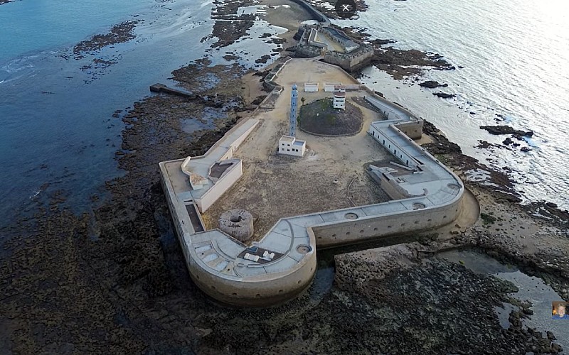 Kasteel van San Sebastián in Cadiz (drone video)