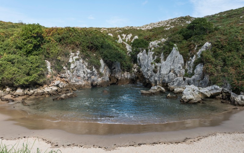 Gulpiyuri, geklasseerd als natuurmonument, is een merkwaardig binnenlands strand zonder directe toegang tot de zee in de gemeente Llanes, Asturië. Eén van de kleinste stranden ter wereld – het is ongeveer 40 meter lang – bestaat uit wit zand en zout water. Het bijzondere aan dit gebied is dat het door een klif aan de zee is afgesloten. Onder de grot bevindt zich een kanaal waar het water van de Cantabrische Zee doorheen kan stromen, waardoor bij eb drainage optreedt. Tijdens vloed is er nauwelijks nog zand over.